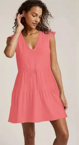 Beyond Yoga Featherweight Out & About Ruffle Mini Dress Tier Drawstring Peach S women’s size small... Show more