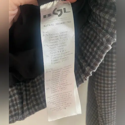 Dark grey and brown all over plaid print Zipper closure Cinched hemline Slit pockets Chest: 25” L... Show more