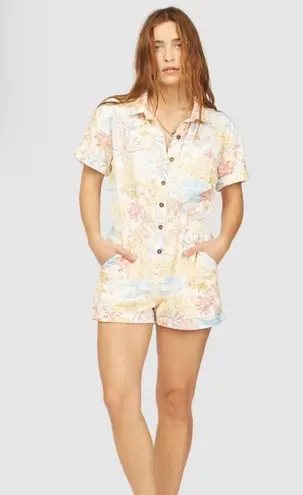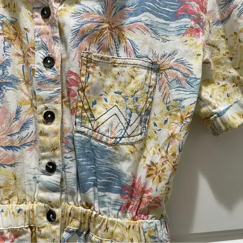 Size small Billabong x Wrangler Cali Sun Jumpsuit romper Button down front Yellow blue pink tropical... Show more