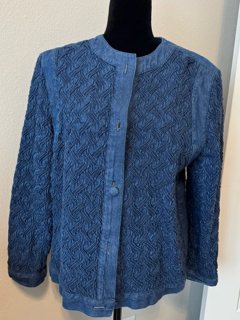 Bis by Gene Ewing Vintage Textured Denim Jacket Size Large Blue - $30 - From Mandy