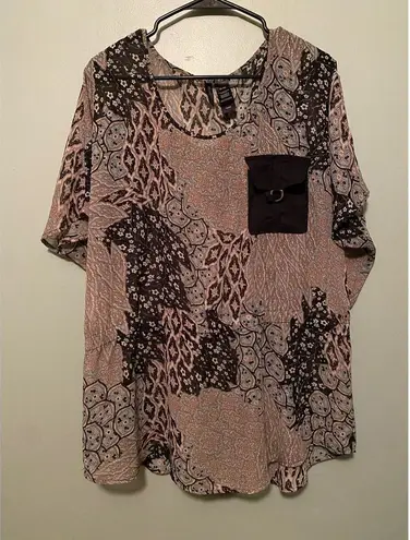 Bisou Bisou Abstract Short Sleeve Fitted Waist Pocket Blouse Size XL Black - $12 - From Nicole