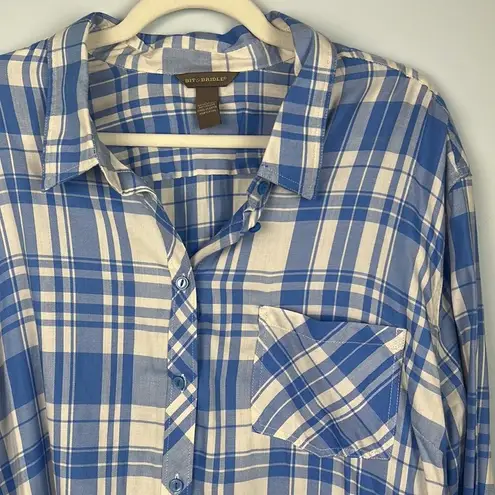 Bit & Bridle 3X plus size cotton blend button down lightweight plaid top Blue - $24 - From Jasmine
