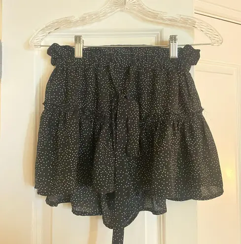 Black and white polka dot mini skort with a tie waist and ruffled hem - $9 (77% Off Retail) - From Jess