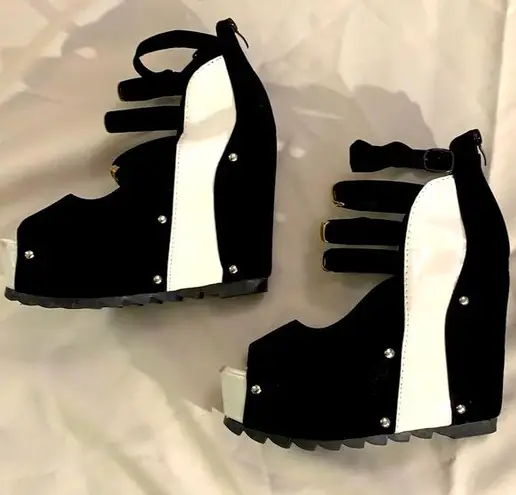 Black and white vegan leather platform open toe shoes. Size 6.5 - $35 - From Erica