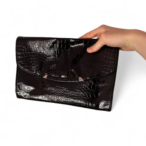 black clutch bag with gold details and crocodile texture - $15 - From Tifany