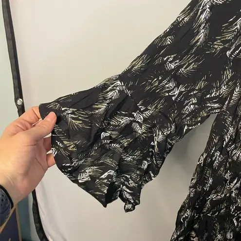 • Black • 100% Rayon • Floral print • Front tie • Bell sleeves • Romper Size large Excellent p... Show more