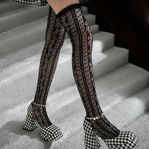 Black Lace Hollow-Out‎ Patterned Calf Socks Stretchy Polyamide One Size - $16 New With Tags - From Mon