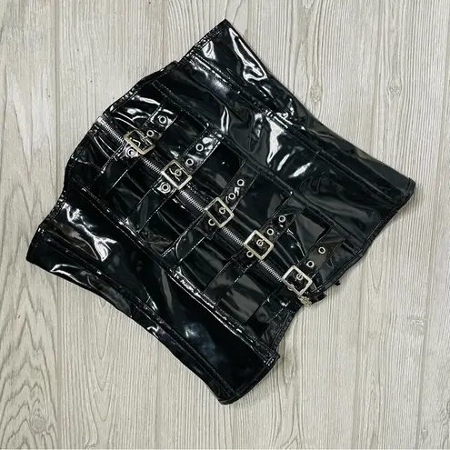 Black leather / latex look buckle front corset with tie back lingerie shirt lg - $57 - From Sara