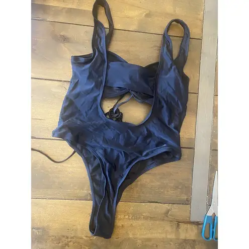 Black One Piece Swimsuit Cutout Front Low‎ Back High Thigh Cut Size Large - $23 - From Arielle