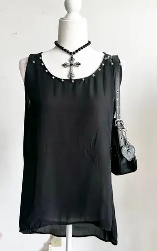 Black Sheer Studded‎ Tank Top, Y2K, Grunge, Glam Rock, Gothic, Edgy, Large - $14 - From Kenia