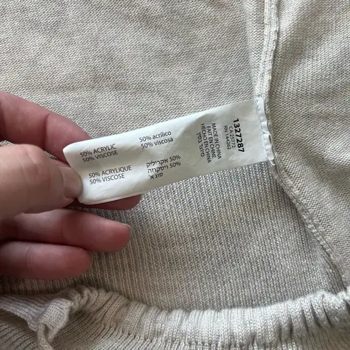 Lightweight Black Tape open-front cardigan in a soft beige knit, designed with a relaxed drape and a cozy hood. Features an adjustable drawstring hem and roomy front pockets for an easy, effortless layer. A versatile everyday piece that works year-round. ⸻ Key Features: • Brand: Black Tape • Size: Women’s Small • Fit: Relaxed open-front cardigan • Color: Beige • Material: 50% Acrylic, 50% Viscose • Measurements: 18” Pit to Pit / 25” Shoulder to Hem • Features: Hood, drawstring hem, two front pockets, lightweight knit, long sleeves • Condition: Excellent pre-owned condition — no stains or holes noted ⸻ Style & Use: Perfect for layering over tanks, tees, or lounge basics. Works with jeans, leggings, joggers, or shorts for an effortless casual outfit. The hood and drawstring hem add a modern, sporty touch while keeping the look soft and neutral. ⸻ Condition: Pre-owned item — please inspect all photos closely and feel free to ask any questions.