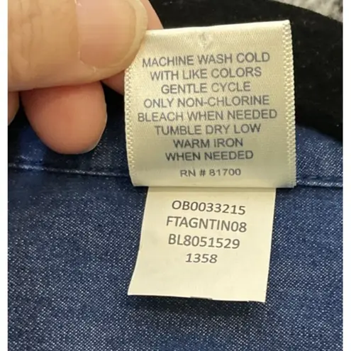 Blair Large Blue Denim Embroidered Button‎ Top Cardinals Birds Pockets Roll Tab Red - $30 - From Andrea