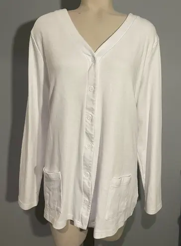 Blair woman’s white v-neck button front cardigan top shirt size large - $15 - From Renee