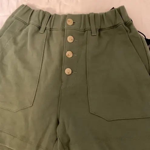 BLANKNYC French Terry Shorts small Olive Button Fly Elastic Waist Knit NWT New Green - $20 New With Tags - From Vero
