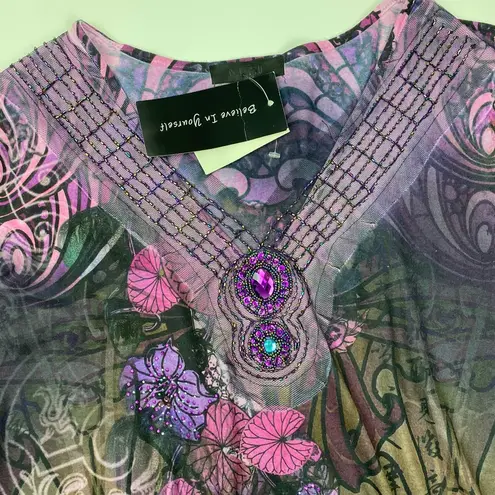 BLEU Tie-dye Beaded V-Neck Blouse NWT Size 1X MSRP$46 Pink - $20 New With Tags - From Stacked