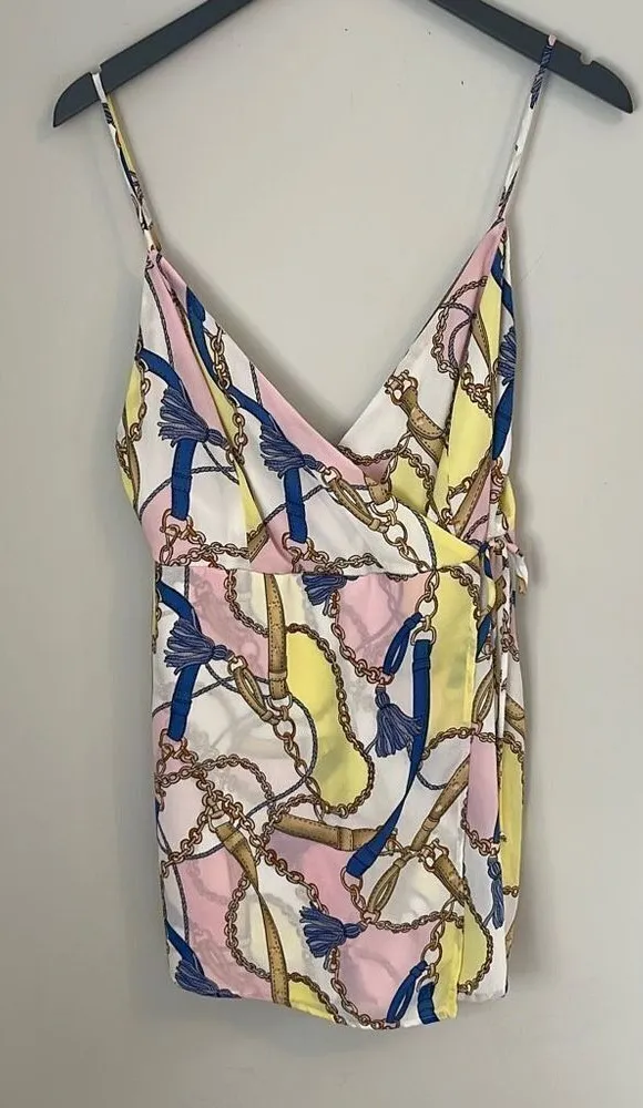 Blue Blush Women's Chain Romper Wrap Skort Front Backless Large Pink Size Large Features: • Faux wr... Show more