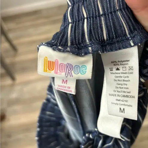 blue chambray and white striped, paper bag style wide leg pants size Medium waist is 14, stretch to... Show more