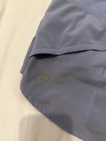 Light blue Lululemon speed up shorts. 2.5 inch inseam, low rise, back zipper pocket, waistband pouch... Show more