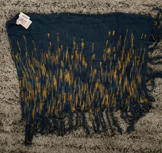 One Size 100% Acrylic May be worn as a Scarf or Poncho Navy and Mustard colors Fringed Hem Detailing... Show more