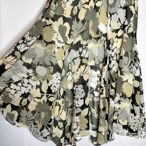 Bob Mackie Floral A-Line Soft Flowy Knee Length Gray Yellow Skirt Medium - $28 - From Nicole