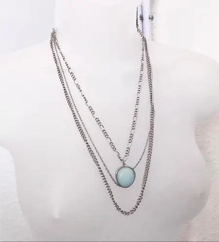Boho hippie indie Faux Turquoise Pendant Silver Tone Necklace Multi Strand layered chain - $21 - From Victoria
