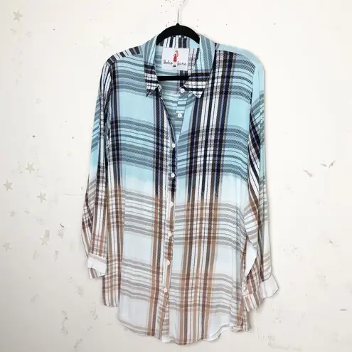 BoHo Jane plaid oversize button-down shirt. 100% rayon with raw him patch detail on the back which says free like a bird. Size small pit to pit 22 inches length 31 inches sleeves 23 inches #3820