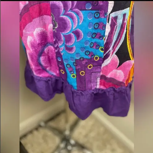 Add a vibrant touch to your summer wardrobe with this stunning boho-style halter dress. Featuring a smocked purple bodice and a flowy multicolor floral and abstract patchwork skirt, this lightweight dress offers effortless style and comfort. The adjustable tie-neck halter design provides a flexible fit for most body types. Whether you’re heading to a festival, vacation, beach day, or casual outing, this eye-catching piece makes a bold statement. • Size: One Size Fits Most • Approximate Length: Knee to midi depending on height • Colors: Purple, blue, orange, yellow, pink, and multicolor patchwork • Features: • Stretch smocked bust • Halter tie neckline • Lightweight woven fabric • Ruffled hem • condition never worn but washed.