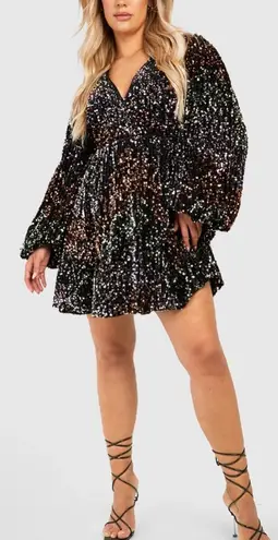 Dazzle in this Boohoo sequin dress. Perfect for parties. Long sleeves add elegance. Vibrant rainbow... Show more