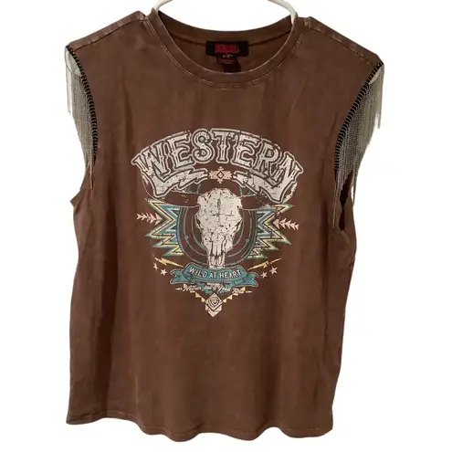 Boot Barn Rock & Roll Denim Women’s Chain Fringe Top BRAND NEW W/TAG. Size M Brown Size M - $23 New With Tags - From Carleen
