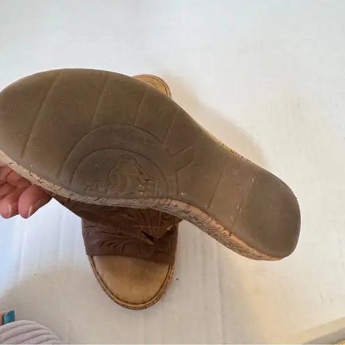 Born Brown Tooled Leather Slide Slip On Sandals Womens 6 Beachy Vacation Shoes - $34 - From Lisa