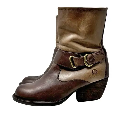 Born Nevica Two Tone Leather Western Block Heel Boots Espresso Antilope Size 6 Brown - $45 - From Pink