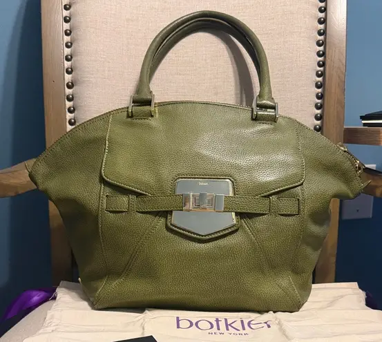 This classic olive satchel is buttery soft! Note scratches on the hardware as pictured from normal w... Show more