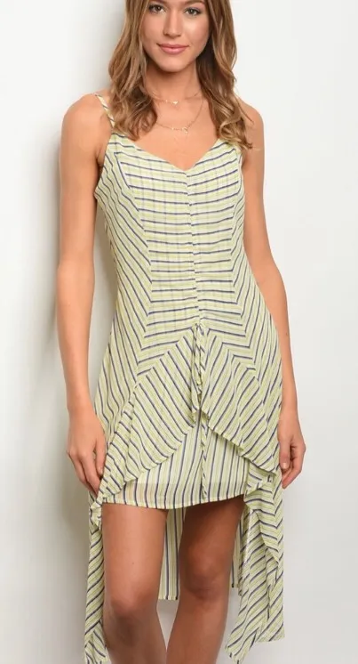 🆕🌞Yellow & Navy Front Draw String Ruffle Dress Model Info: 5’9”, Size Small 100% Polyester • A Season Must Have!! • Available in Medium 8/10 • Front Ruched Detailed Drawstring • Adjustable Spaghetti Straps • Partially Lined, Hi-Low Detailing • Back Zipper, True to Size Thanks for visiting my Boutique 🤗💕.