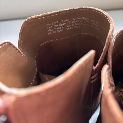 A chunky stacked heel lifts an almond toe bootie that has chic day to night appeal. Round toe. Leath... Show more