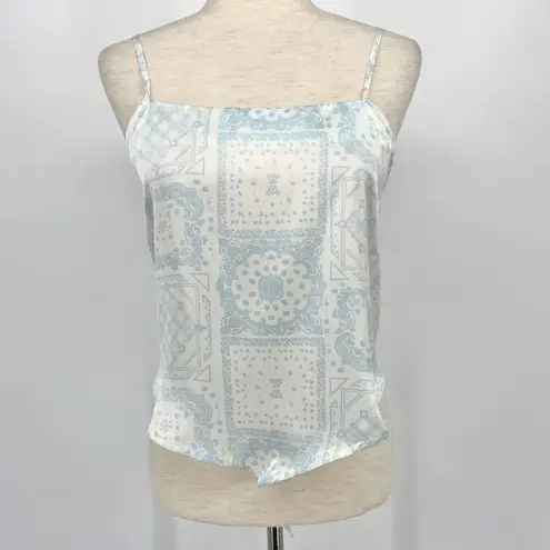 BP Handkerchief Crop Top Silky Satin Blue and White Print Adjustable Spaghetti Straps Tie Back Style... Show more