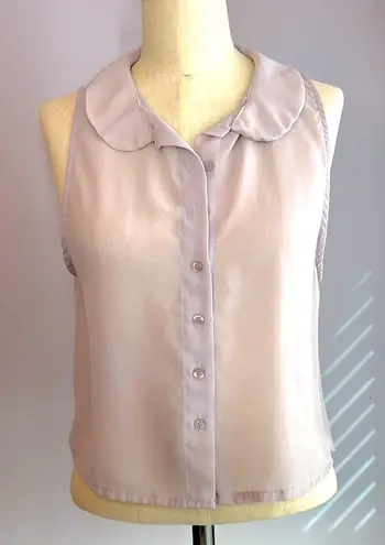 Brandy Melville semi sheer lilac sleeveless button front high low crop top with collar. 2 tiny spots... Show more