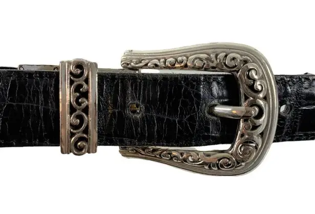 Features: Reversible black and tan leather with silver tone buckle and hardware No size tag - Measu... Show more