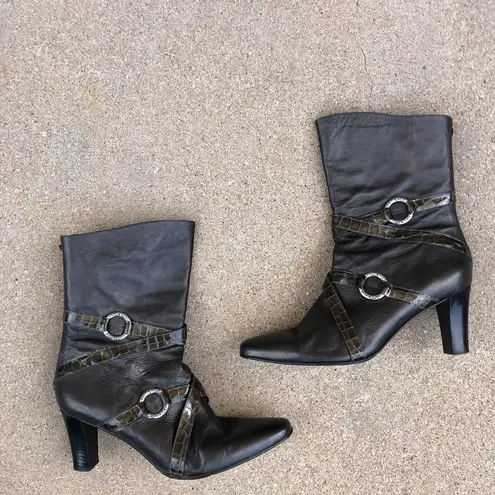 Brighton Y2K Whimsygoth Harness Bondage Grunge Dark Pointed Toe Leather Ankle Mid Calf Boots Silver O-Rings Sz 9M - $95 - From Victoria