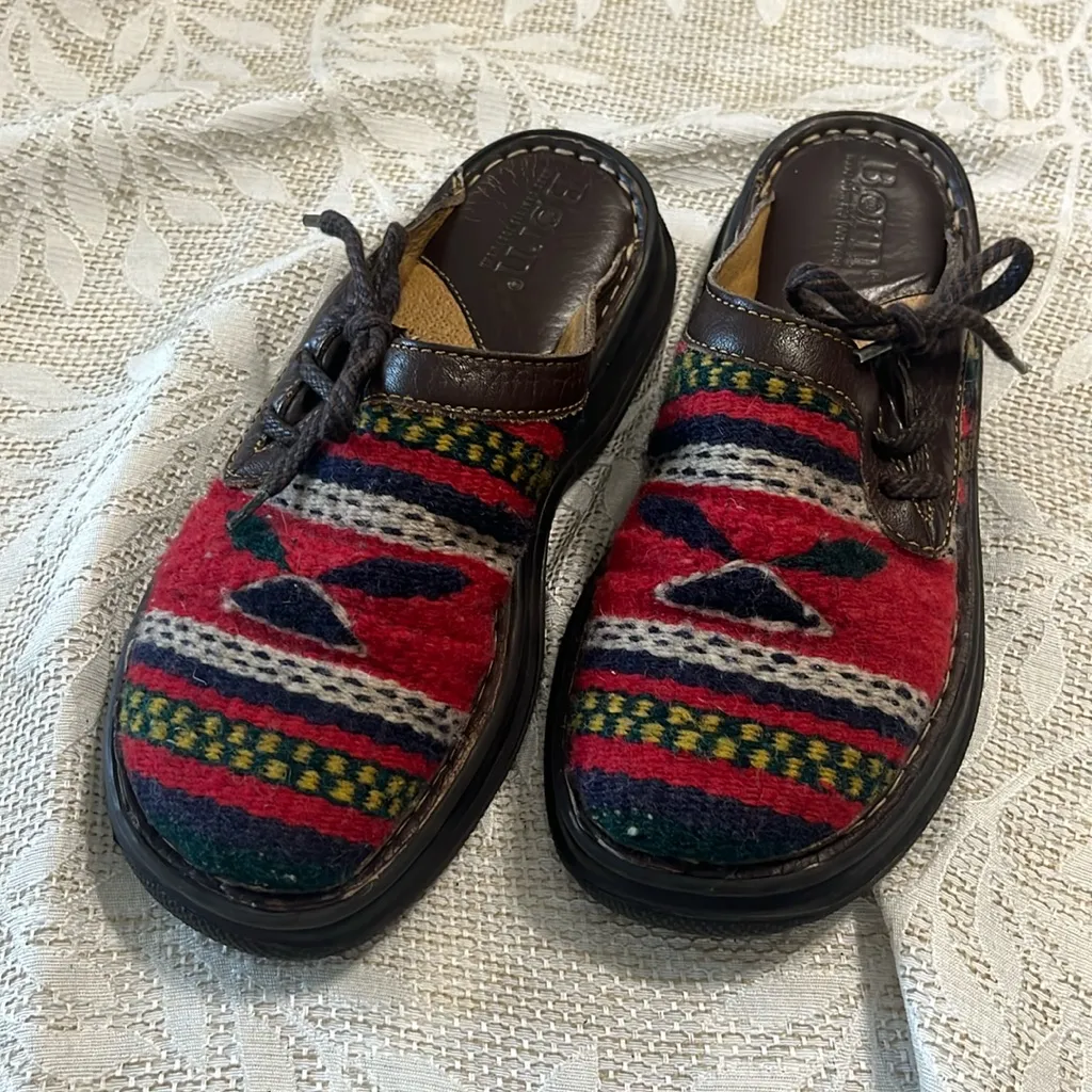 BØRN 1970s Leather Tizoc Wool Aztec Tribal Clogs Size 7‎ Brown - $33 - From Rebecca