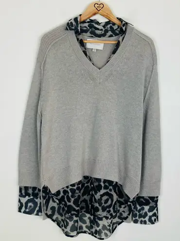 Brochu Walker taupe oversized wool cashmere sweater w/ leopard print collar cuff Gray Size M - $95 - From Ann