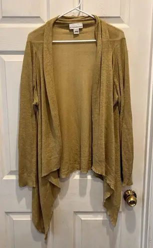 Bryn Walker Cardigan Jacket Women's Large Linen Gold Open Lagenlook Boho Beach Euc. No rips or stains. Minor washwear. Beautiful linen open front cardigan. UA to UA 22 Measured flat and approximate due to the fact that it is an open cardigan.