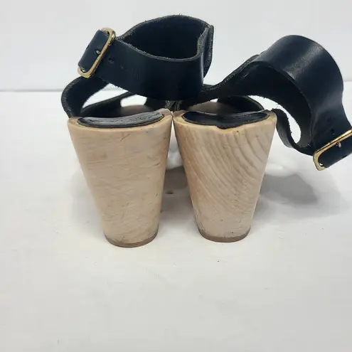BRYR Clogs Size 38 Black Miranda Wooden Clog Sandals Leather Peep Toe Womens - $175 - From Persa