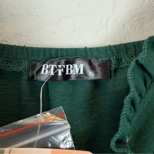 This Vneck spaghetti Strap pant jumpsuit is perfect for warm weather or pair with a blazer for a transitional piece. ruffle trim bodice with snap closure adjustable straps smocked waistline wide leg pockets Elastic back trim New with Tags in Excellent Condition Color: Green Size: XL P2P: 20" Waist: 17"