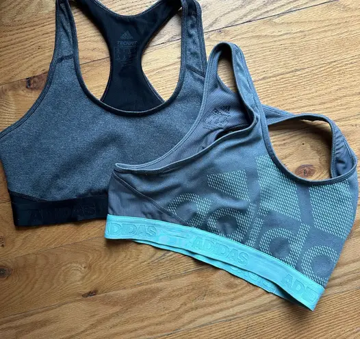 Stay active with this Adidas sports bra duo. Features gray and teal designs. Perfect for workouts.