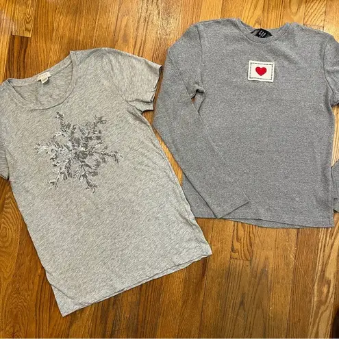 Two great tees for holiday wear! GAP Long Sleeve Tee in medium gray made of heavier 100% material... Show more