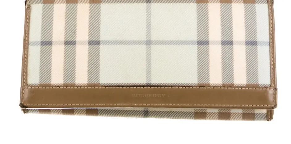 Chic Burberry clutch with iconic plaid pattern. Stylish and versatile accessory.