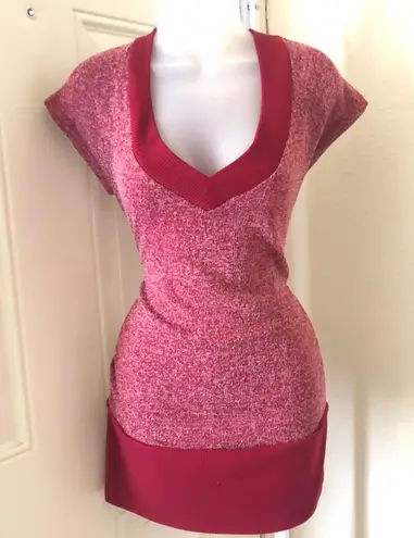 Burgundy and red mini fitted sweater deep v-neck dress short sleeves. Size M - $29 - From Victoria