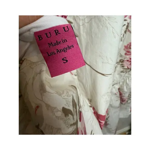 Buru x Megan Stokes Pink Floral Midi Dress Sz. S Approximate retail $298 Excellent condition! Rare find! Measures: 46"L front-49"L back, 18”armpit x armpit Made in Los Angeles Poly/Cotton Blend Hand wash