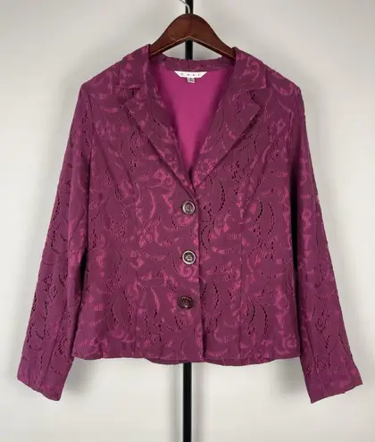 CAbi 128 Frolic Blazer Jacket in Plumberry Lace Overlay Office Womens Size 8 Nice used condition... Show more