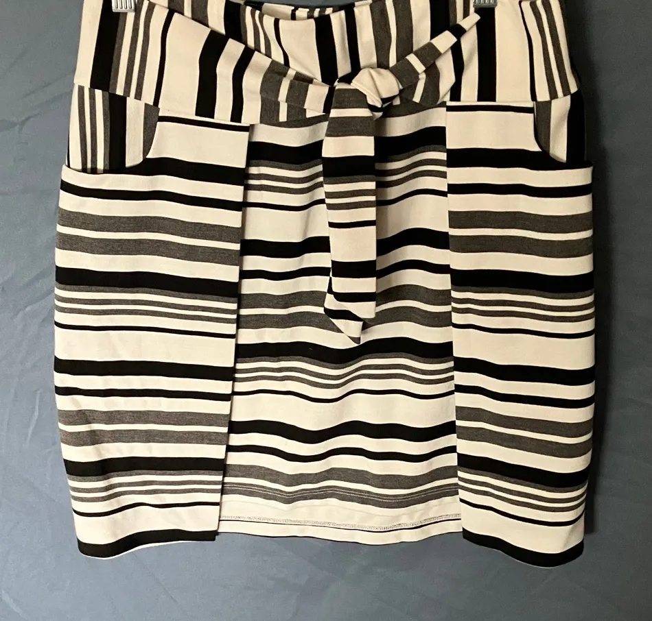 Preowned: Good condition Elegant pencil skirt with bold black and white stripes. Features a stylish... Show more